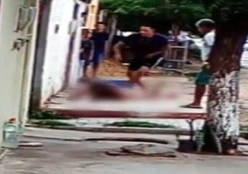 Vídeo: ‘Peladão’ surta e ataca pessoas com facão