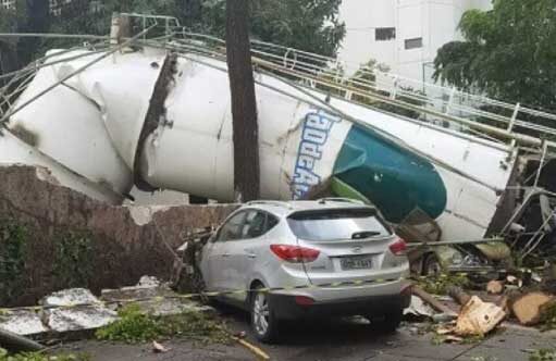 Caixa d’água de supermercado estoura e cai por cima de carros em condomínio no Recife; veja no vídeo