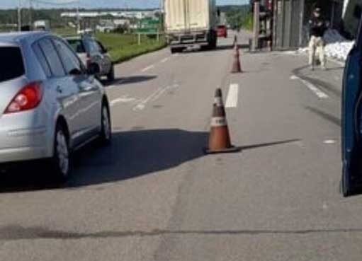 Caminhão carregado com pedras tomba e trânsito fica complicado na BR-101