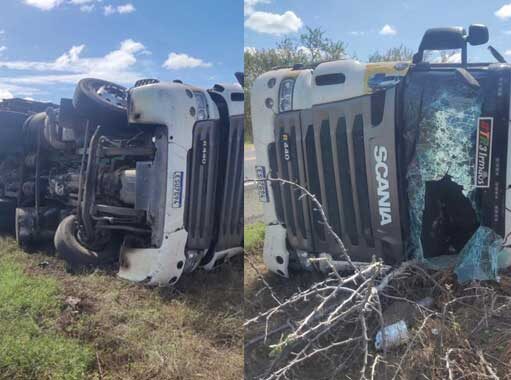 Caminhão da Coca-Cola tomba na BR-230, próximo a cidade de Patos, durante a madrugada desta quarta-feira (07)